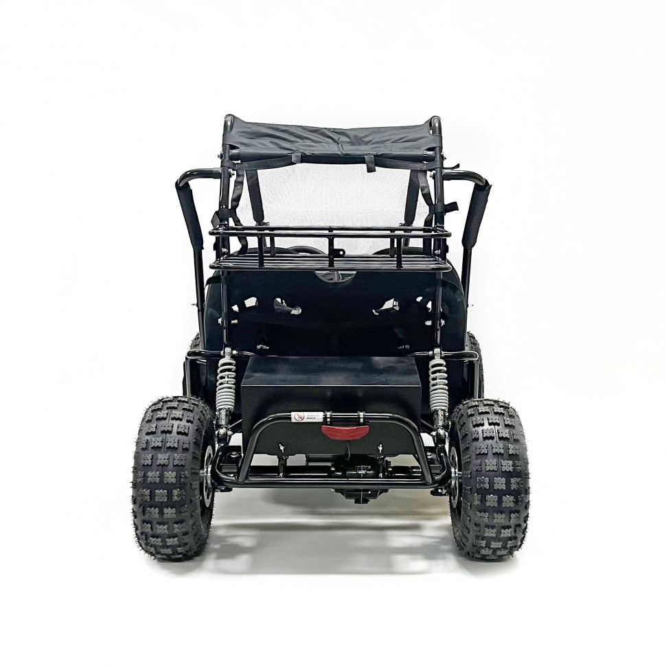 Багги оборудован пружинными амортизаторами, которые обеспечивают плавный и комфортный ход даже на неровных поверхностях. Дисковые тормоза как спереди, так и сзади гарантируют надежное торможение, что значительно повышает уровень безопасности во время движения.