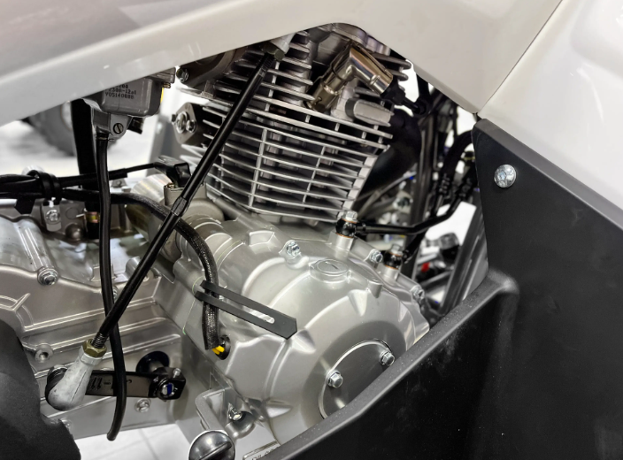 Модель оснащена электрическим стартером, что обеспечивает легкий запуск двигателя в любых условиях. Вариаторная трансмиссия позволяет плавно переключать скорости, что делает управление квадроциклом простым и интуитивно понятным. Работая на бензине АИ-92, он демонстрирует отличную экономичность с расходом топлива, который составляет всего 3,8 л на 100 км.
