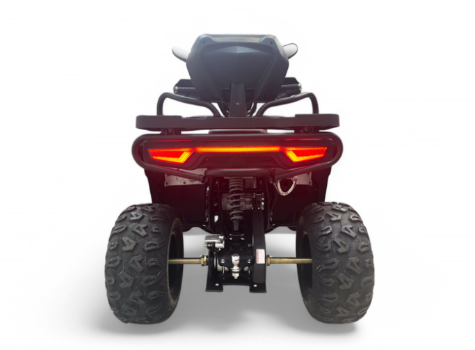 Комфорт во время поездки обеспечивается независимой передней подвеской с двойными амортизаторами, что позволяет квадроциклу легко справляться с неровностями дороги. Задняя подвеска с одиночным амортизатором удара дополнительно смягчает колебания, обеспечивая плавность хода.