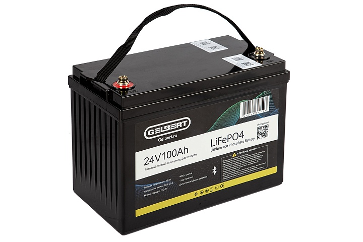 Литиевый тяговый аккумулятор Gelbert LiFePO4 (24V/100Ah/120А/2,400Wh) Bluetooth в Москве