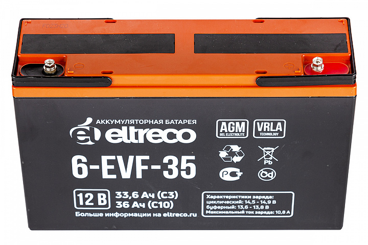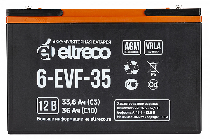 Тяговый аккумулятор Eltreco 6-EVF-35 (12V35A/H C3) — это надежная необслуживаемая AGM VRLA батарея, разработанная для обеспечения стабильной работы в самых различных условиях. Сочетая передовые технологии и прочную конструкцию, этот аккумулятор является отличным выбором для вашего оборудования.