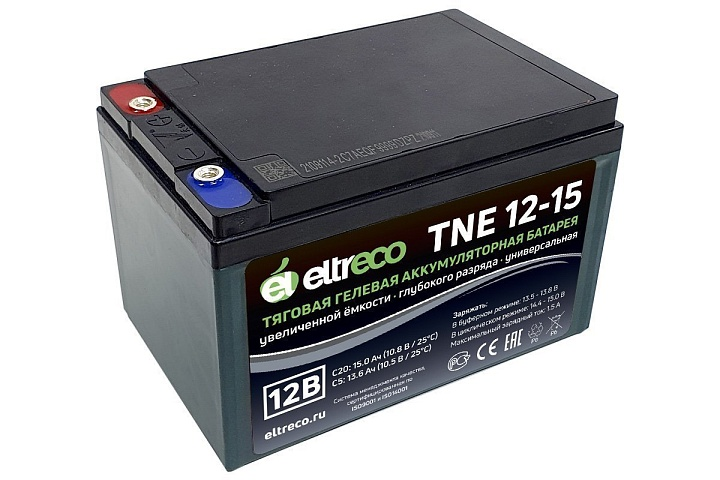 Аккумулятор Eltreco TNE12-15 (12V12A/H C3) является идеальным выбором для обеспечения стабильного питания различных устройств и электрических транспортных средств. Этот тяговый необслуживаемый аккумулятор, выполненный с использованием технологии AGM VRLA, гарантирует высокую производительность и долговечность, что делает его подходящим для различных приложений.