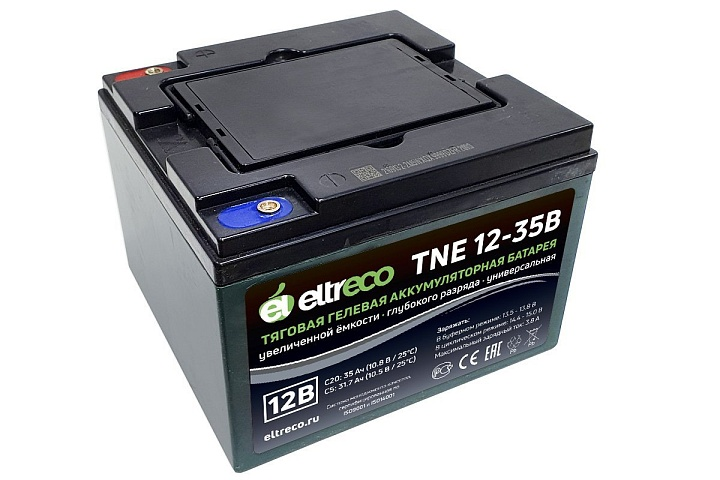 Eltreco TNE12-35 использует технологию AGM VRLA, что делает его необслуживаемым и повышает безопасность эксплуатации. В его конструкции применяется электролит на основе наноразмерного силикагеля, который обеспечивает отличные характеристики работы и устойчивость к внешним воздействиям.