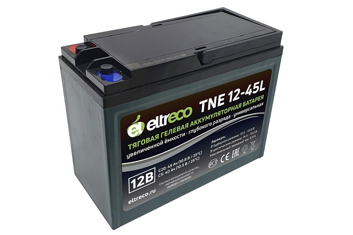 Eltreco TNE12-45 идеально подходит не только для электротранспорта, но и для использования в системах бесперебойного питания (ИБП) и других областях, где требуется надежное электропитание. Он также может быть использован в поломоечных и уборочных машинах, а также в системах солнечной энергетики, что делает его универсальным решением для различных задач.