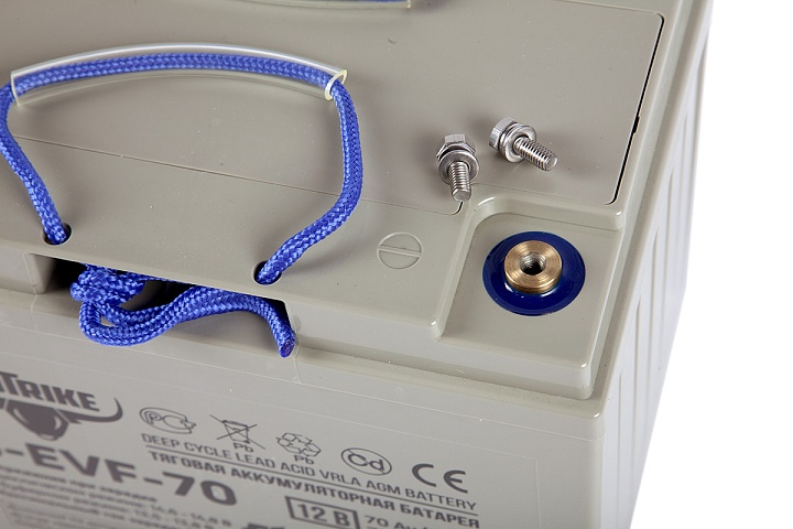 С весом 23,4 кг, аккумулятор легко устанавливается и заменяется. Прямая полярность (+ -) упрощает подключение, а клеммы с резьбой под болт M6 обеспечивают надежное соединение. Эти характеристики делают RuTrike 6-EVF-70 отличным выбором для пользователей, ценящих надежность и эффективность.