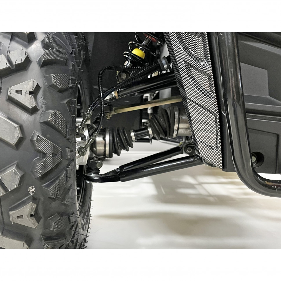 Колеса размером R12 и шины 25X8-12 (передние) и 25x10-12 (задние) обеспечивают отличное сцепление с дорогой, что позволяет уверенно проходить через различные препятствия и сохранять стабильность на поворотах.