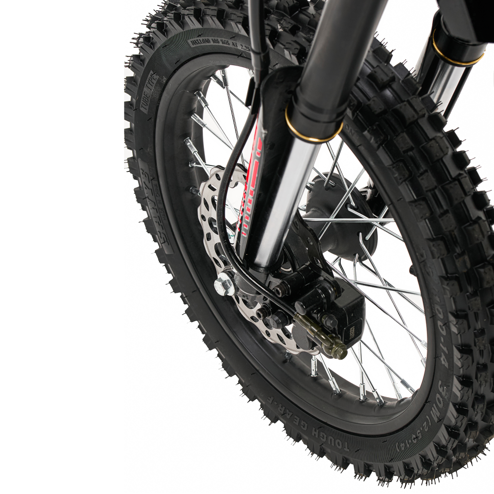 С аккумулятором емкостью 25000 мАч и напряжением 48 V, электропитбайк способен проехать до 60 км на одном заряде, что делает его отличным выбором для длительных поездок. Полная зарядка занимает всего 7 часов, что позволяет быстро подготовиться к новым приключениям. Дисковые гидравлические тормоза обеспечивают надежное торможение даже при высоких скоростях, что особенно важно для безопасности на сложных маршрутах.