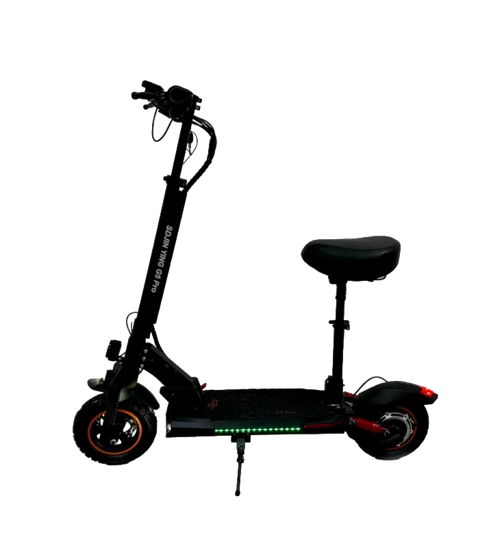 Степень защиты IP54 позволяет использовать самокат в легкий дождь и на мокрых дорогах без риска повреждения электроники. Максимальная скорость 45 км/ч и запас хода 55 км делают SDJiN G5 PRO отличным выбором для ежедневных городских поездок. Модель сочетает мощность, комфорт и современные технологии для требовательных пользователей.