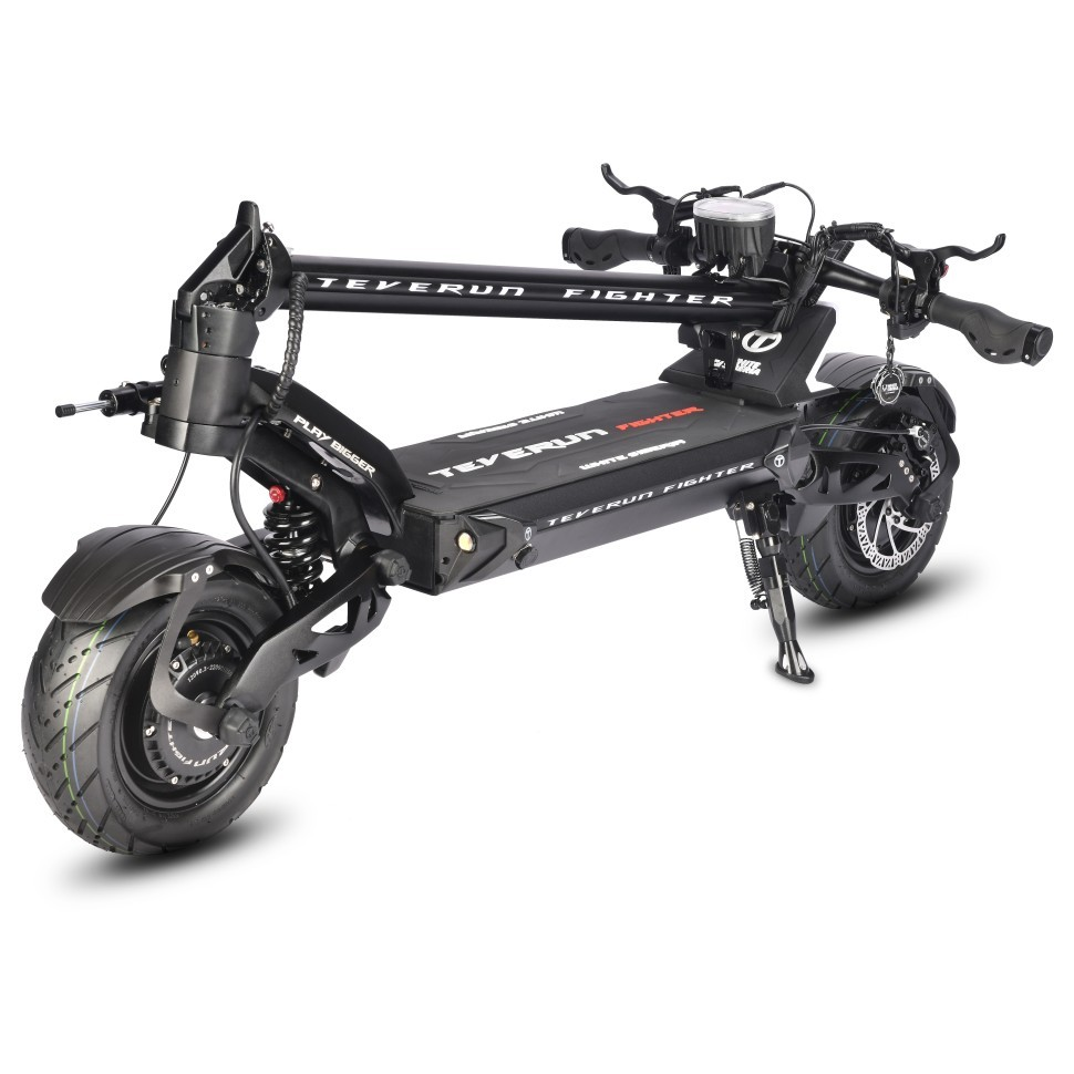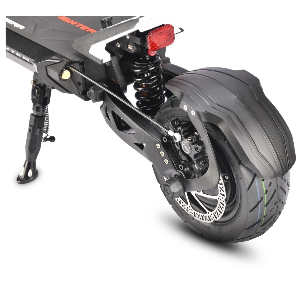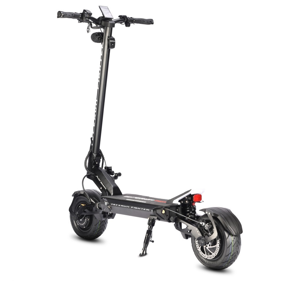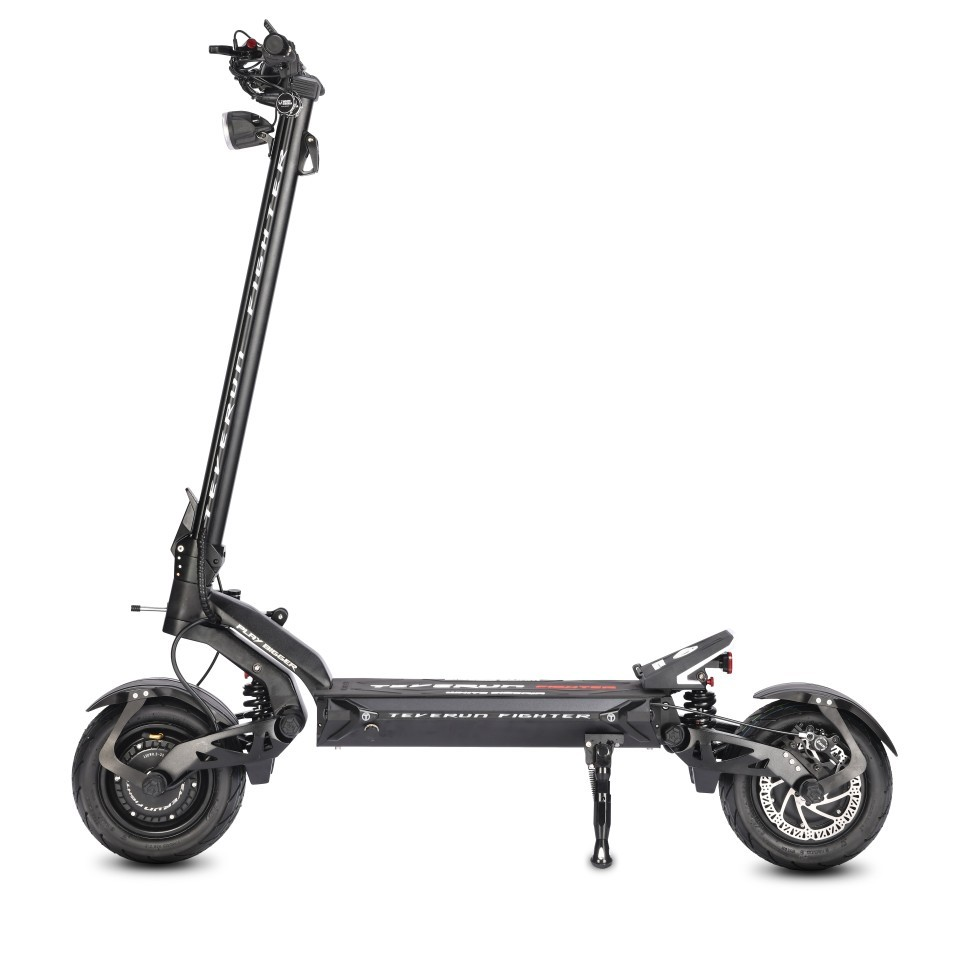 Электросамокат TEVERUN FIGHTER 11 оборудован всеми современными технологиями. Запуск и блокирование самоката NFC чипом, а не привычным ключом зажигания. Для большего удобства можно использовать мобильный телефон с функцией NFC для разблокировки электросамоката. Отдельно стоит отметить гидравлическую тормозную систему. Впервые на самокатах такого класса устанавливаются тормозные роторы 160мм. Для любителей быстрой езды на электросамокат TEVERUN FIGHTER 11 установлен демпфер рулевой стойки.