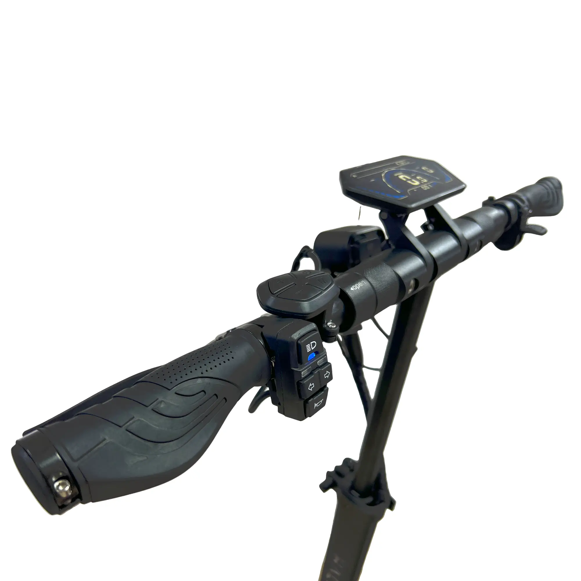 Современный и стильный дизайн Halten Tornado V2 дополнен декоративной подсветкой, что не только придает ему привлекательный вид, но и улучшает видимость в темное время суток. Освещение передней и задней частей самоката обеспечивает безопасность во время поездок в условиях низкой освещенности. Полный привод способствует отличной управляемости и маневренности, что особенно важно в городских условиях.