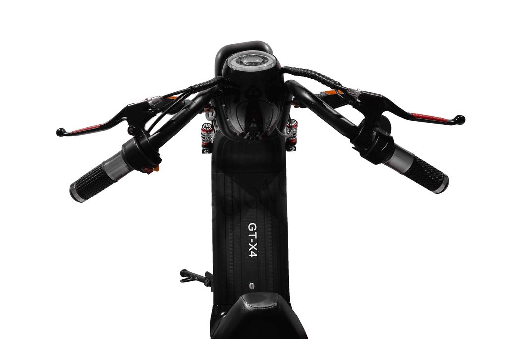 Электроскутер Citycoco GT X4 — электроскутер с двойным сиденьем. Модель создана для комфортного передвижения в городских условиях. Максимальная скорость достигает 35 км/ч, а пробег на одном заряде составляет до 30км. Для безопасной остановки в электроскутер Citycoco встроена тормозная система. Она состоит из дискового и гидравлического тормоза. Смягчают тряску от неровных дорог надувные колеса и амортизаторы. Максимальная нагрузка на модель — 120 килограммов.