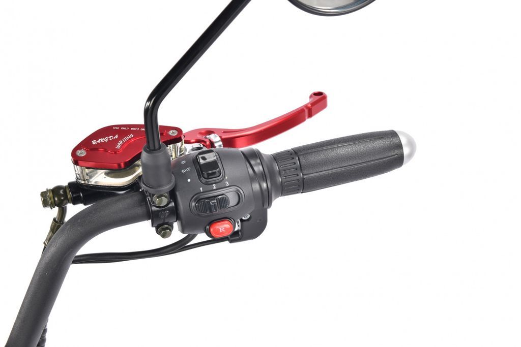 Если же не нужен бокс, то в комплекте есть классическая спинка второго пассажира. - На руле установлен большой LED дисплей, на нем отображается скорость, заряд батареи, индикация света пройденная дистанция за все время и за одну поездку.