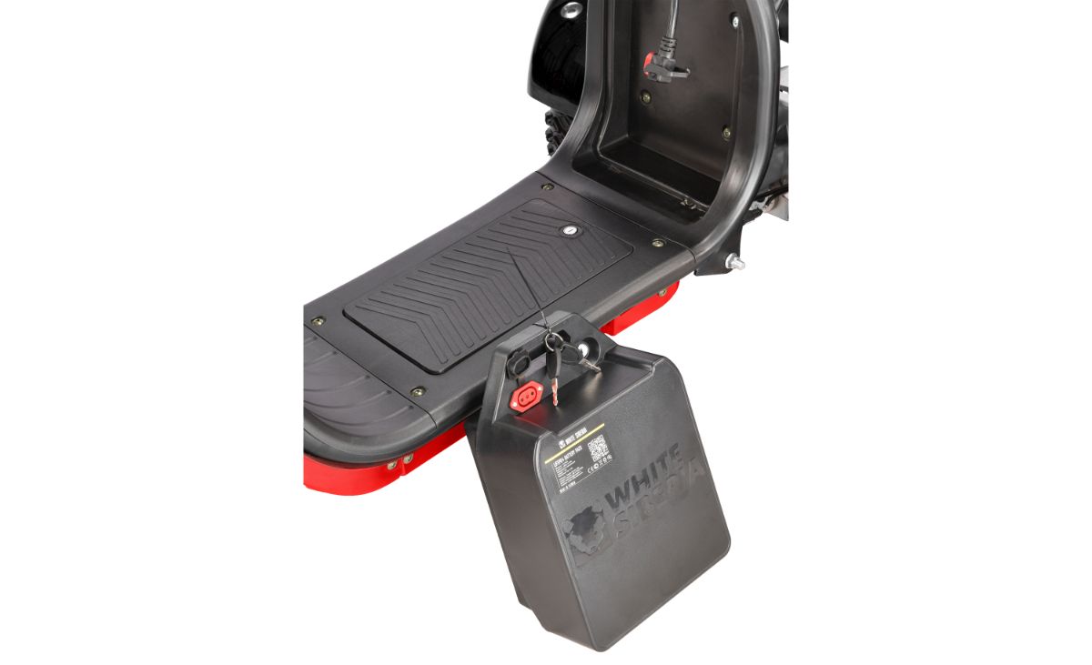 Надежная АКБ сделана на основе наноструктур литий-железо-фосфатного комплекса LiFePO4 мощностью 2,2 кВт, сам комплекс используется в как катод. Батарея содержит призматические ячейки и рассчитана до 4000 заряд-разрядов – 11 лет каждодневной работы ТС или 400 тыс. км пробега. Специалистам удалось сохранить первоначальную емкость АКБ, не зависящую от количества заряд-разрядов. КПД батареи достигает 95% даже при заряде 20% – АКБ работает стабильно и без перебоев. Времени для быстрой зарядки потребуется час при использовании оригинального устройства с силой тока 30 А. Полная зарядка длится два часа. Особенности сборки электроскутера предохраняют батарею от короткого замыкания, она не подвержена взрывам и возгораниям.