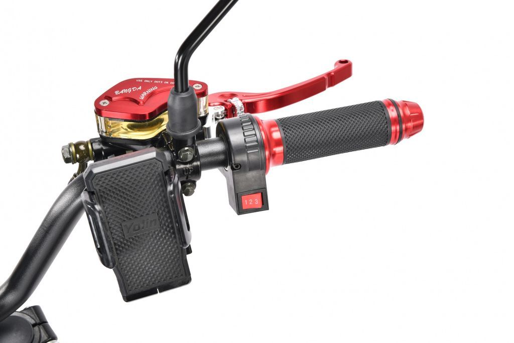 Электроскутер имеет большой LED-дисплей, который отображает скорость, заряд батареи и пройденную дистанцию. Это позволяет пользователю всегда быть в курсе состояния своего транспортного средства. Интуитивно понятные кнопки управления и настраиваемые ручки тормоза добавляют удобства в использовании, позволяя каждому легко адаптироваться к управлению скутером.