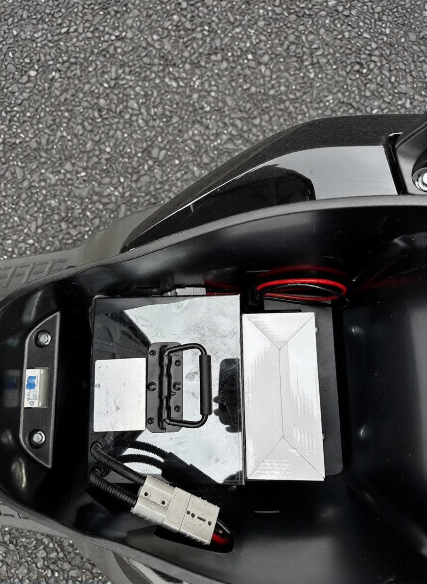 Конструкцией предусмотрено место для установки второй аккумуляторной батареи, что позволяет увеличить суммарную емкость до 60 А·ч и соответственно удвоить запас хода. Возможность быстрой замены батарей делает скутер пригодным для длительных путешествий и коммерческого использования. Дополнительная батарея приобретается отдельно и устанавливается в штатный отсек.
