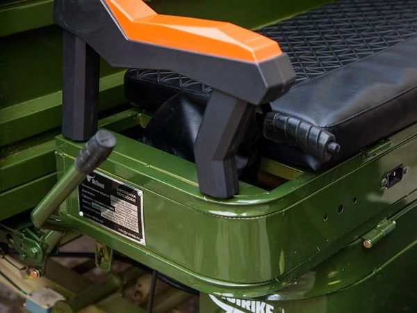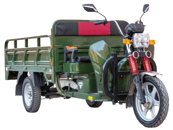 Рама из высокоуглеродистой стали обеспечивает прочность и долговечность конструкции, что крайне важно для транспортного средства, которое будет использоваться в различных условиях. Этот трицикл спроектирован так, чтобы выдерживать значительные нагрузки и служить долго.