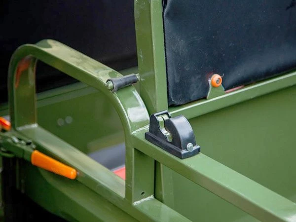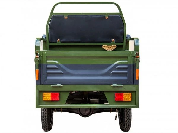 Освещение спереди и сзади гарантирует видимость в темное время суток, что делает его безопасным для эксплуатации. Кабина и крыша отсутствуют, что позволяет использовать трцикл для различных типов грузов и пассажиров.