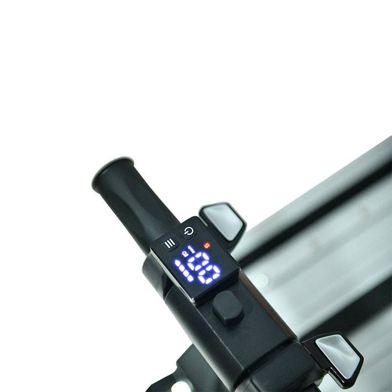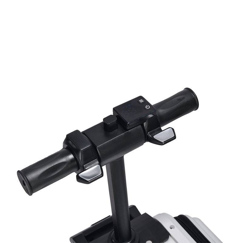 Скутер оснащен регулируемой ручкой высотой 25 см, что позволяет легко подстраивать его под индивидуальные параметры пользователя. Размеры чемодана составляют 50х20х30 см, а в сложенном виде он занимает всего 60х30х57 см, что делает его удобным для транспортировки. Быстросъемная батарея позволяет легко менять аккумулятор, если это необходимо, без лишних затрат времени.