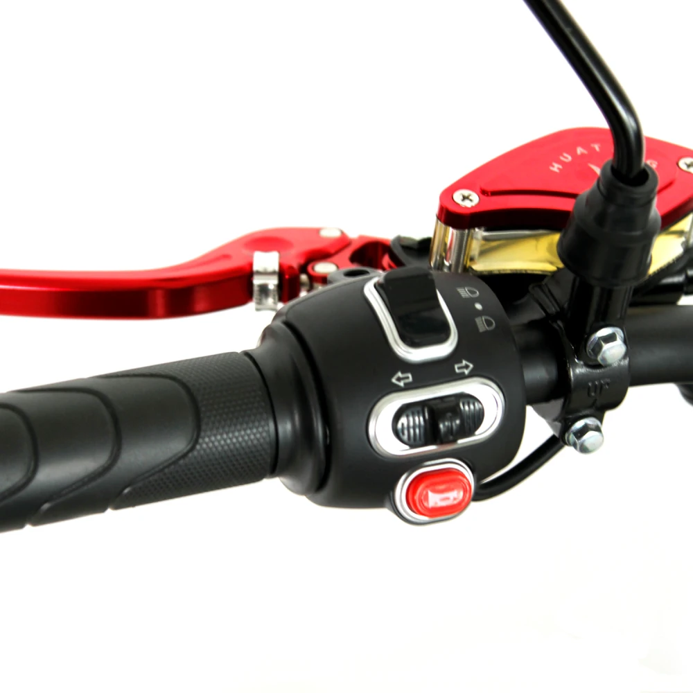 Электроскутер оснащен гидравлическими тормозами как спереди, так и сзади, что обеспечивает высокую эффективность торможения и безопасность при движении. Надувные колеса обеспечивают отличное сцепление с дорогой, что делает поездки комфортными даже на неровных поверхностях.