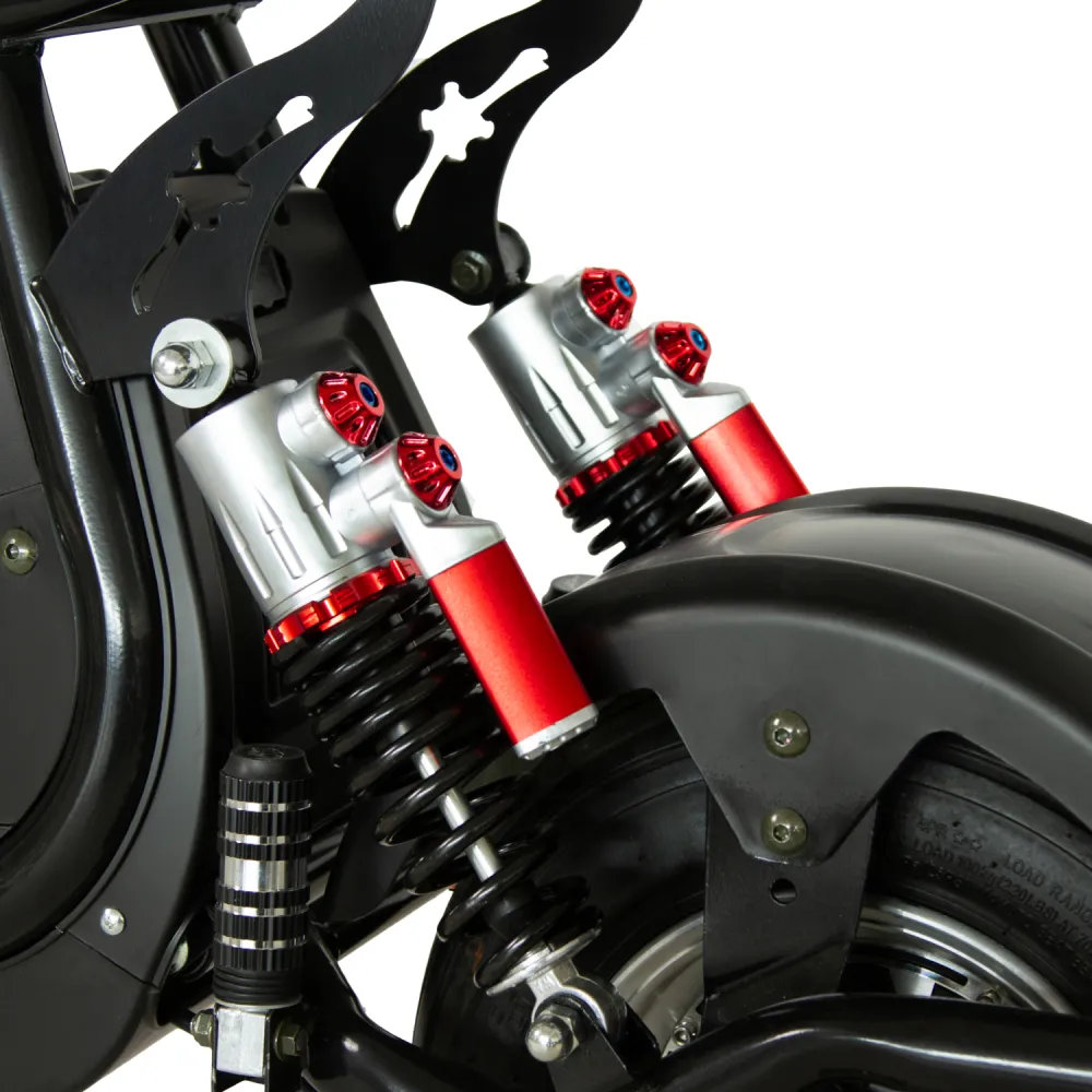 Комфорт во время поездки повышает система подвески, включающая переднюю гидравлическую амортизацию и заднюю пружинную. Клиренс в 8 см позволяет легко преодолевать небольшие препятствия, обеспечивая стабильность и уверенность на различных типах покрытия.
