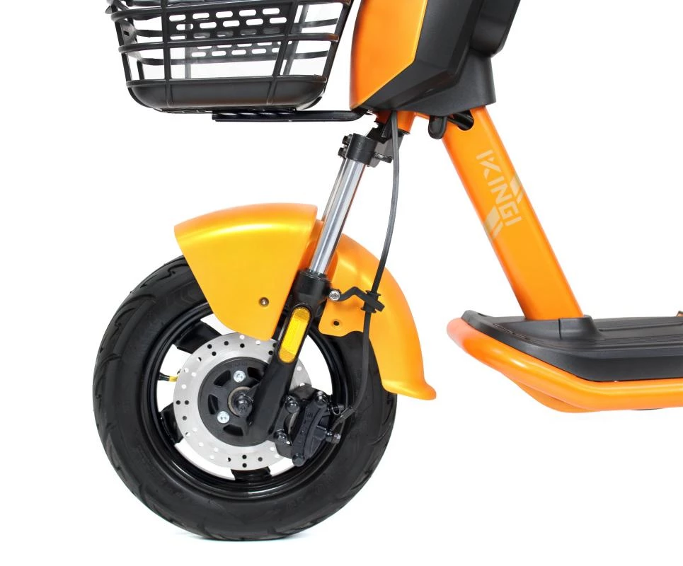 IKINGI XC-3 также оснащен мощной фарой, что значительно увеличивает видимость в темное время суток и обеспечивает дополнительную безопасность. Удобное сиденье, подножка и корзина делают его комфортным для длительных поездок и удобным для перевозки вещей. Наличие зеркал и передних и задних поворотников позволяет водителю лучше контролировать ситуацию на дороге.