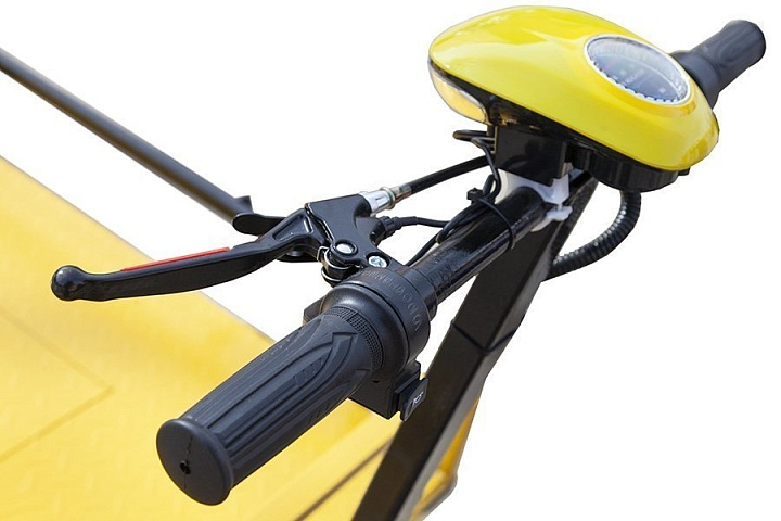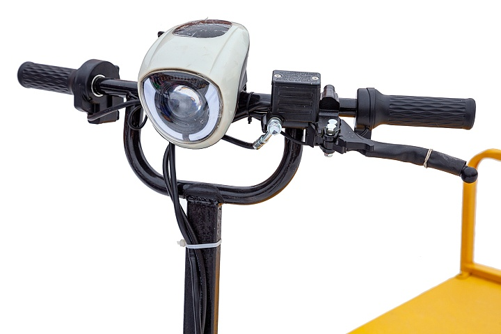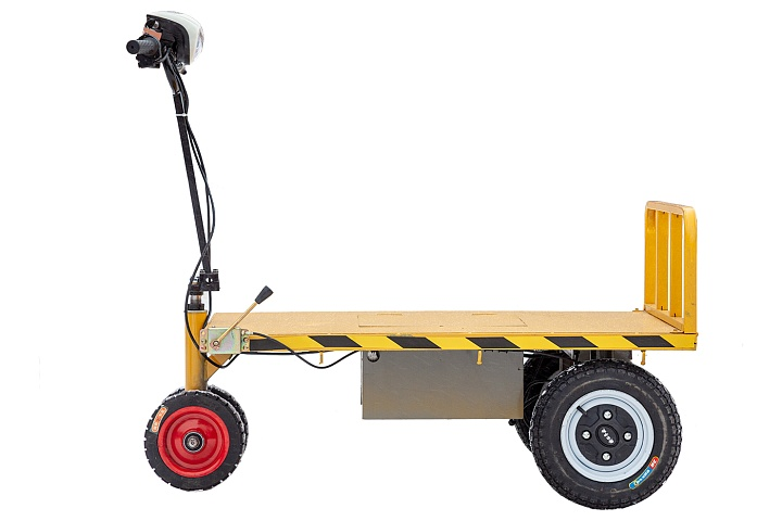 Тележка оснащена тяговыми необслуживаемыми AGM VRLA аккумуляторами емкостью 20Ah, что обеспечивает пробег до 20 км на одной зарядке. Сухой вес устройства составляет 110 кг, что гарантирует хорошую маневренность при высокой прочности.