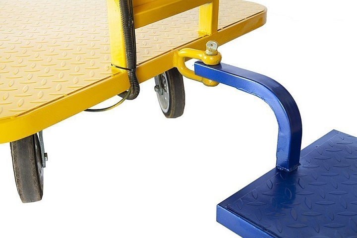 Тележка оснащена тяговыми аккумуляторными батареями емкостью 32 Ah, что обеспечивает пробег до 30 км на одной зарядке. Сухой вес устройства составляет 100 кг, что делает его достаточно легким для маневрирования при высокой прочности и надежности.