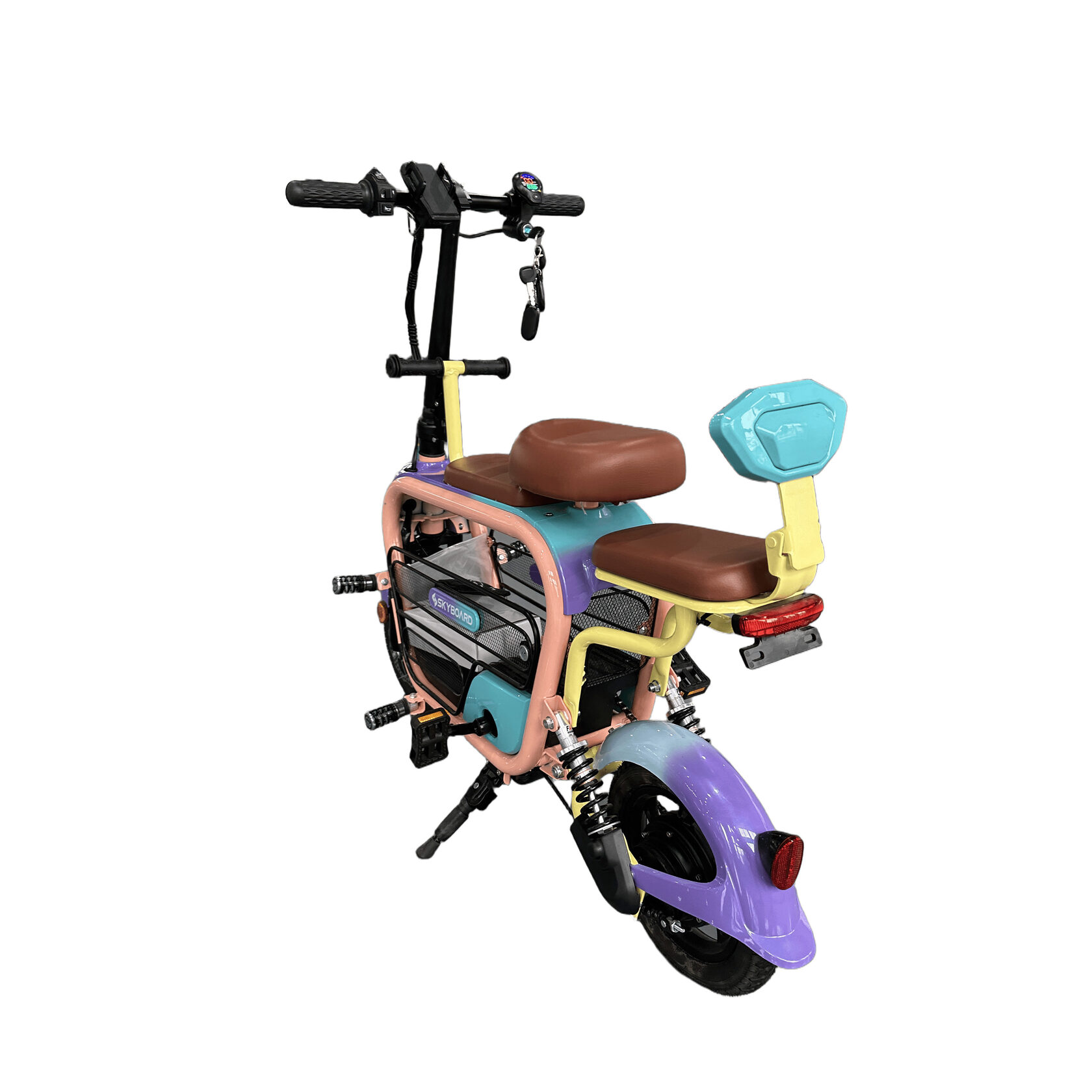 С высотой сиденья 690 мм, этот электроскутер подходит для пользователей разного роста. Максимальная нагрузка до 100 кг позволяет перевозить дополнительные грузы или пассажиров без проблем, что делает его универсальным решением для города.