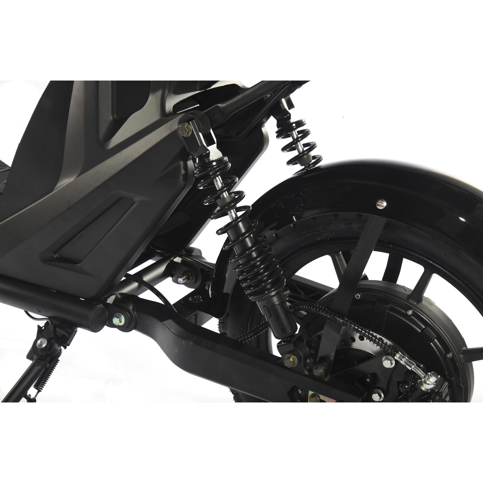 Электроскутер оборудован 14-дюймовыми передними и задними дисками, которые обеспечивают отличное сцепление с дорогой. Бескамерные надувные колеса и шоссейные покрышки гарантируют комфортную поездку даже на неровных поверхностях, а прочная рама из алюминия и стали с электрофорезным покрытием обеспечивает долговечность и надежность.