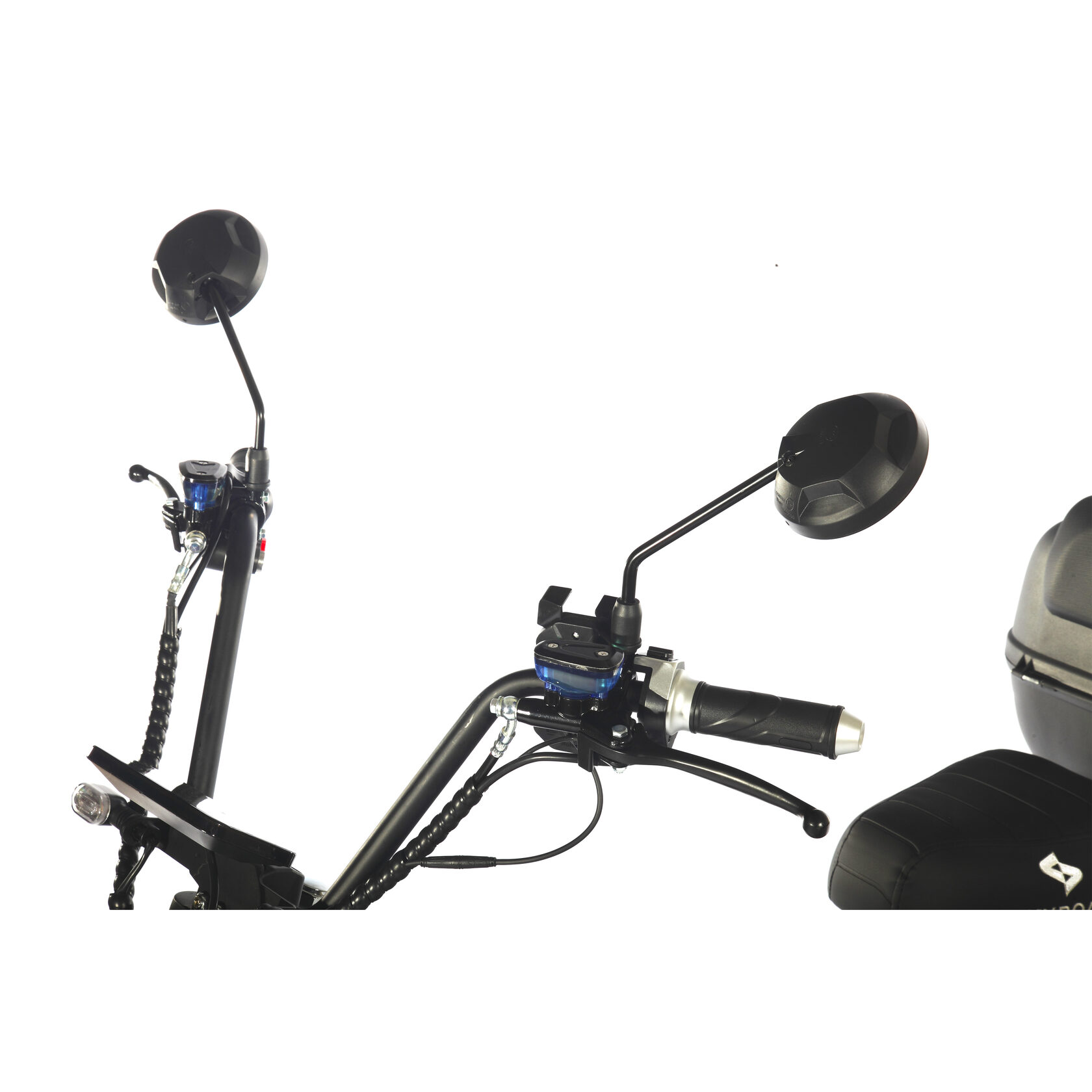 Одноместное сиденье Skyboard Sakhalin обеспечивает комфорт во время поездки, а большой кофр со спинкой предоставляет достаточно места для хранения личных вещей. Зеркала заднего вида и подножка с функцией блокировки питания повышают удобство использования.