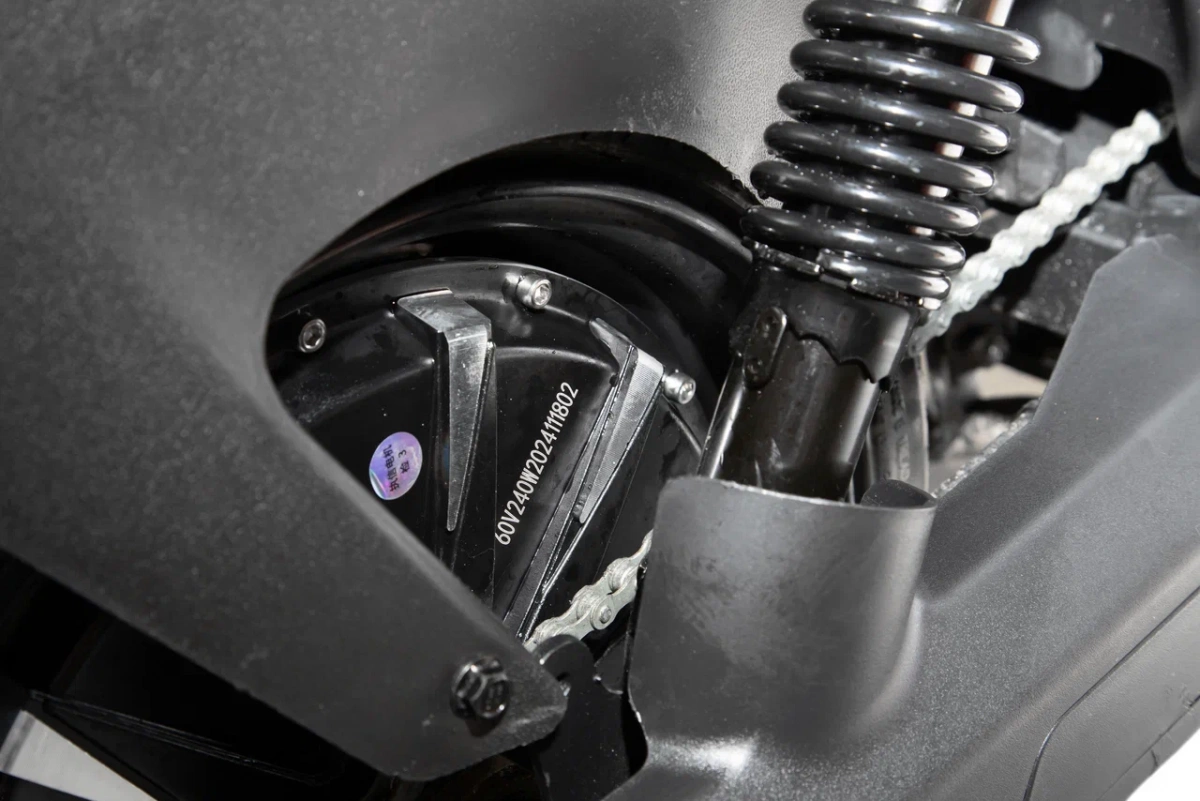 Электроскутер оборудован гидравлическими тормозами, которые гарантируют надежное и безопасное торможение, особенно в условиях плотного городского трафика. Удобное сиденье и подножка добавляют комфорта во время поездок, а дисплей предоставляет всю необходимую информацию о состоянии скутера и его параметрах.