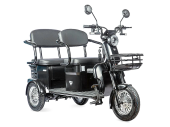 Трицикл Rutrke Караван - прекрасное универсальное транспортное средство! Задний ряд сидений откидывается, образуя вместительный кузовной отсек, тем самым превращая пассажирский электроскутер в компактный грузовичок, которому всегда найдётся работа в хозяйстве! Дополнительную практичность обеспечивают две прочные металлические корзины: спереди и сзади.