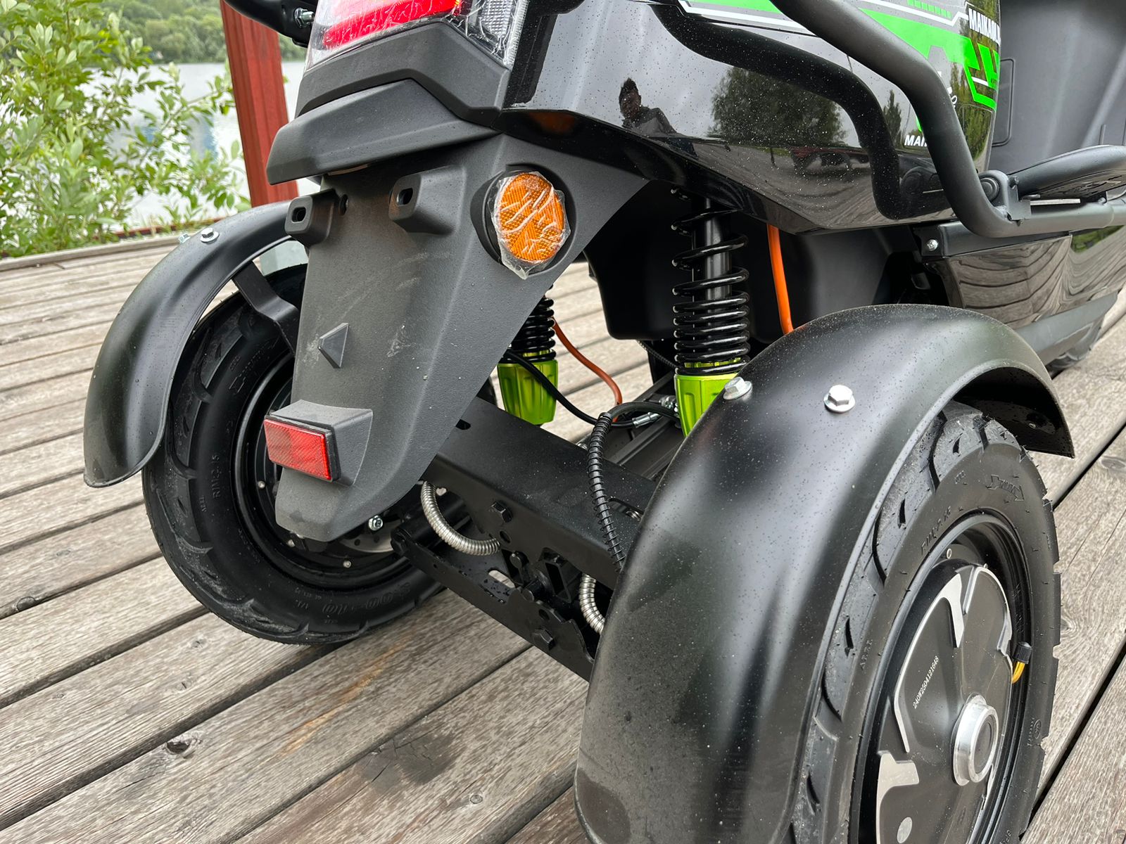 Интуитивно понятный дисплей на руле предоставляет всю необходимую информацию о скорости и состоянии аккумулятора, что делает управление электротрициклом простым и удобным. Зеркала добавляют дополнительный уровень безопасности, позволяя следить за дорожной обстановкой и предотвращать возможные опасные ситуации.