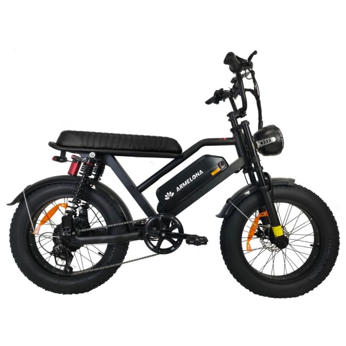 Электровелосипед Armelona AR-1 построен на 20-дюймовых спицевых колесах, которые обеспечивают оптимальное сочетание маневренности и ремонтопригодности. Спицевая конструкция позволяет при необходимости заменять отдельные спицы или выправлять обод, что особенно ценно при длительной эксплуатации. Габаритные размеры составляют 1680×660×1100 мм, а вес велосипеда равен 37.5 кг, обеспечивая устойчивость на дороге.