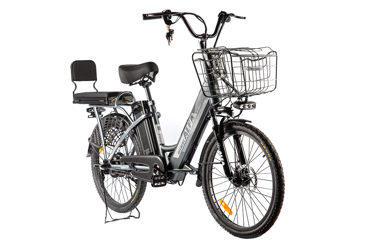 С диаметром колес в 24", этот электровелосипед гарантирует отличную устойчивость и комфорт при движении по различным типам поверхности, будь то асфальт, грунтовка или легкие холмы.