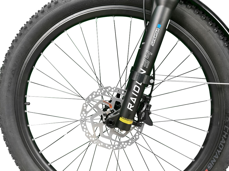 Для обеспечения максимального комфорта во время поездки, этот электровелосипед оснащен вилкой Suntour RAIDON 34 AIR с ходом 140 мм. Эта вилка эффективно поглощает удары и неровности дороги, что делает каждую поездку более плавной. Дисковые гидравлические тормоза с 4-поршневыми механизмами гарантируют надежное торможение в любых условиях, что особенно важно при высоких скоростях.