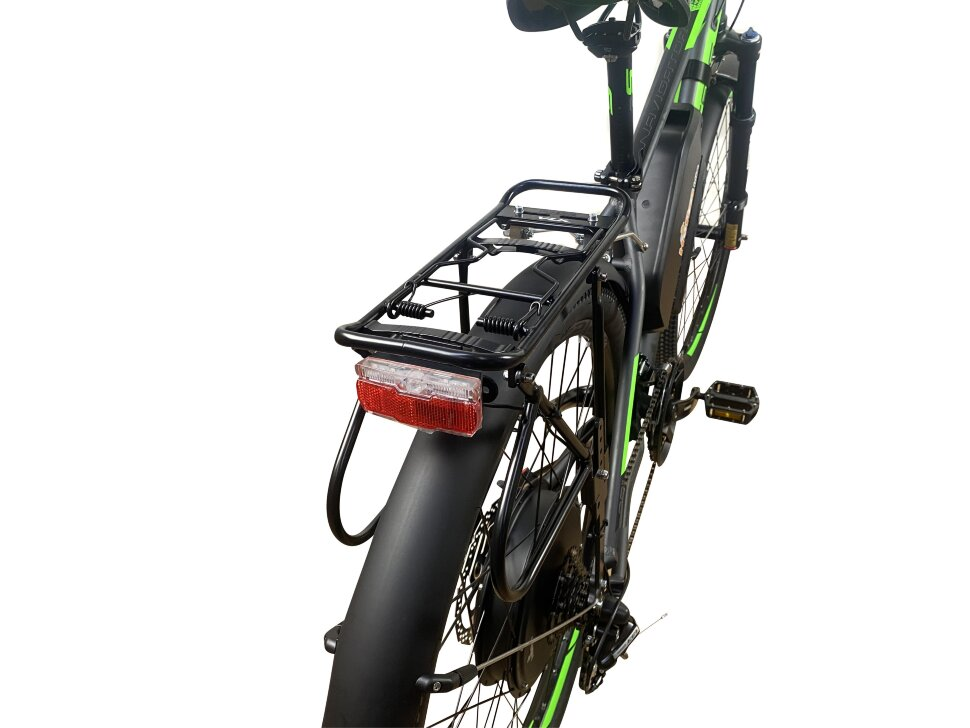 Рама из алюминия 6061 обеспечивает легкость и прочность конструкции, что делает этот электровелосипед устойчивым к внешним воздействиям и долговечным в использовании. Ростовка 20.5 дюймов подходит для пользователей ростом от 180 до 195 см, обеспечивая комфортную посадку и легкость в управлении. Максимальная нагрузка в 110 кг позволяет использовать велосипед для перевозки грузов или в качестве транспортного средства для двоих.