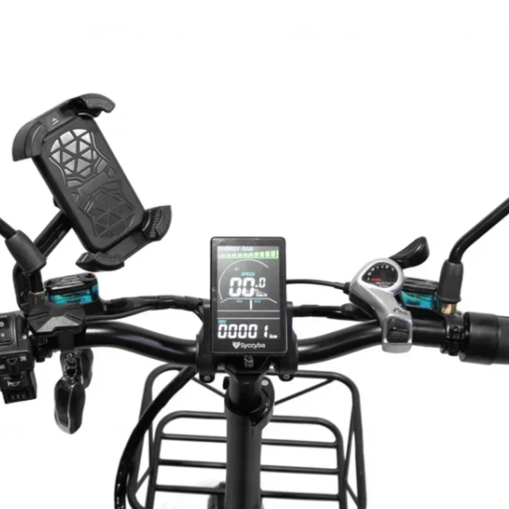 Syccyba H2 DUAL также оборудован бортовым компьютером, который предоставляет важную информацию о текущей скорости, пробеге и состоянии аккумулятора. Наличие фар и ходовых огней значительно повышает видимость в темное время суток, а корзина добавляет удобства, позволяя легко перевозить личные вещи и покупки.