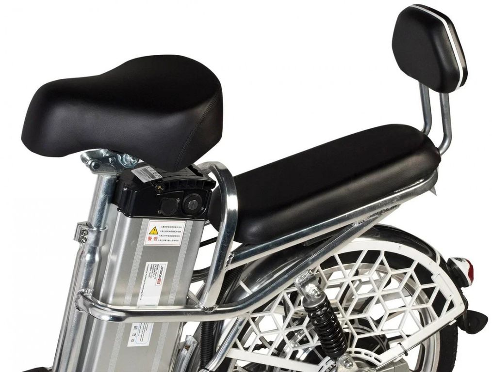 - V8 Pro умеет дополнительное сидение для второго пассажира и сетку для продуктов спереди. Идеальный загородный вариант электровелосипеда.