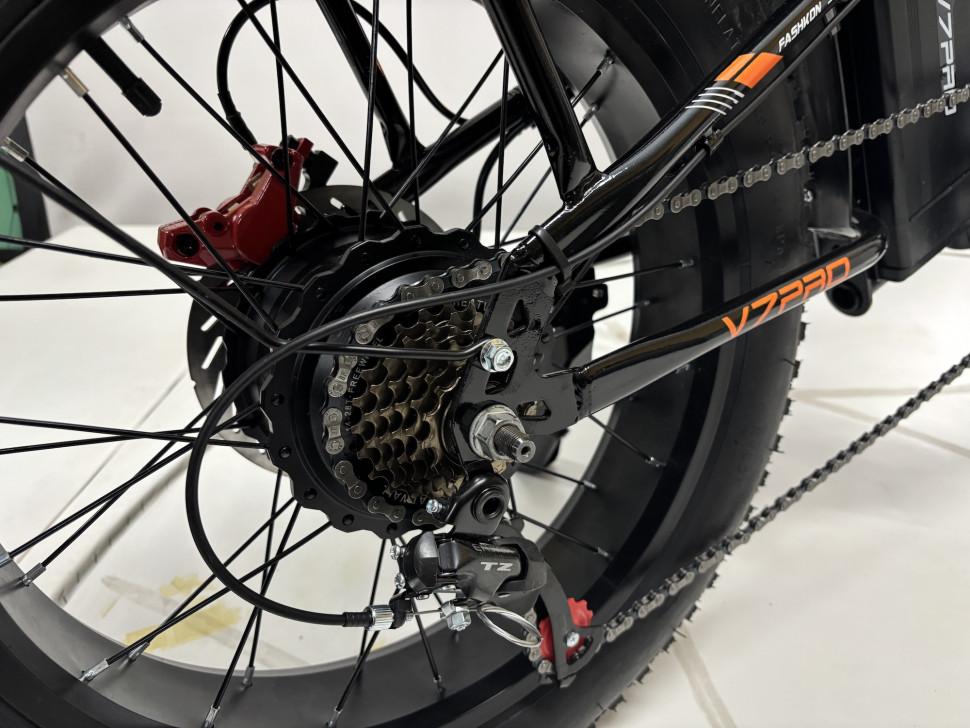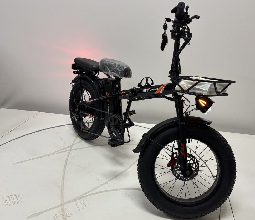 Складная конструкция электровелосипеда GT V7Pro делает его удобным для хранения и транспортировки, что особенно важно для городских пользователей. Тип передачи — мотор-колесо, что обеспечивает отличную маневренность и стабильность на дороге. Колеса R20FAT и шины размером 20х4.0 обеспечивают хорошее сцепление с дорогой, позволяя уверенно передвигаться по различным покрытиям.