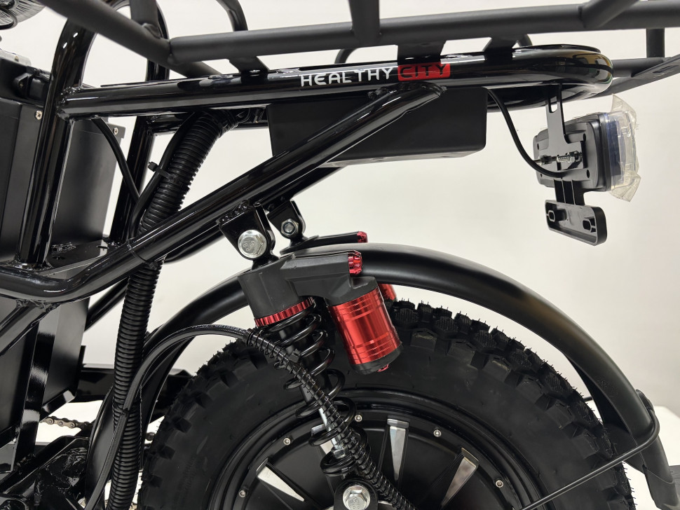 С мощным мотором номинальной мощностью 1200 Вт и типом мотора Direct Drive, электровелосипед обеспечивает отличную динамику разгона и высокую эффективность. Это позволяет легко преодолевать подъемы и поддерживать высокую скорость на ровных участках дороги. Аккумулятор с напряжением 60V и емкостью 30Ah обеспечивает пробег до 80 км на одном заряде, что делает его идеальным для длительных поездок без необходимости частой подзарядки.
