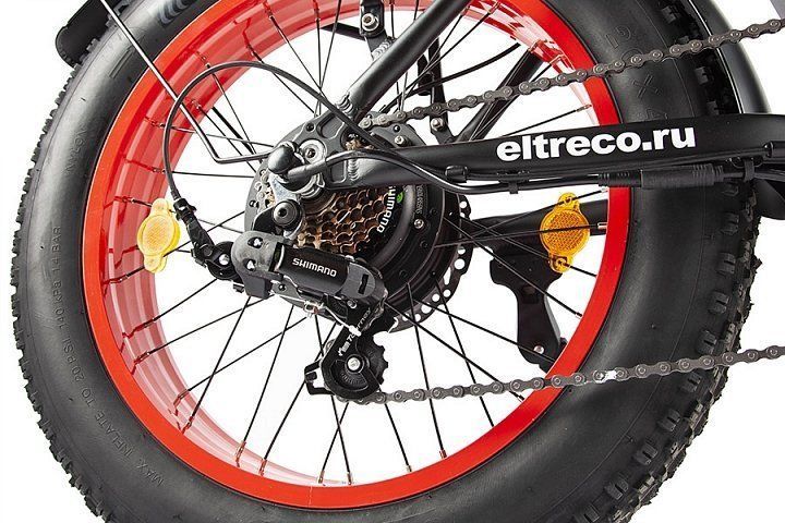 - Два мощных фирменных электромотора Eltreco, по 500W каждый, на переднем и заднем колёсах