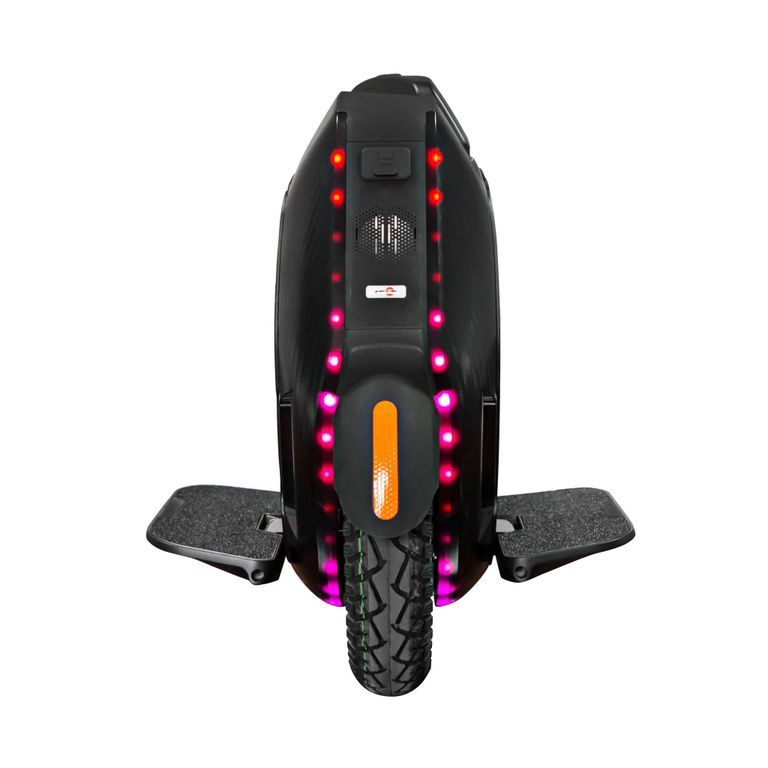 - KingSong KS16X выполнен в черном корпусе со вставками “под карбон”. По бокам расположена LED-подсветка, управлять которой можно с помощью фирменного приложения для смартфона.