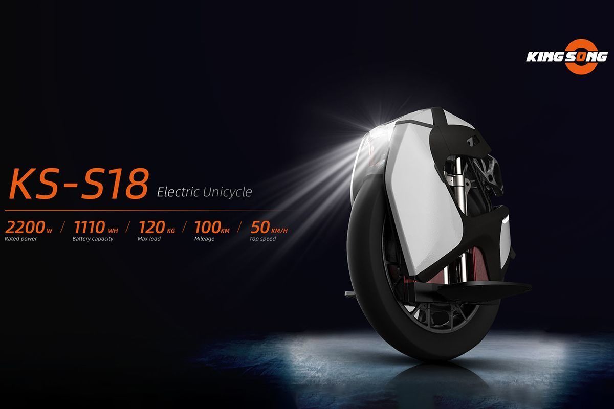 Kingsong S18 моноколесо с мощность двигателя 2200 Вт и аккумулятором на 1110 Втч.