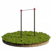 Уличный спорткомплекс состоит из 1 перекладины, которая закреплена к столбам через специальный хомут, выдерживающий нагрузку до 500 кг.
